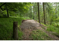 From the ridestop entrance, the staked line travels North-East until it meets an old field boundary, where posts lead slightly south of east to the fenceline with the adjacent meadow. This fenceline forms the boundary until the fence turns in a south easterly direction. The boundary here goes straight to the Ivan'ss wood access track.