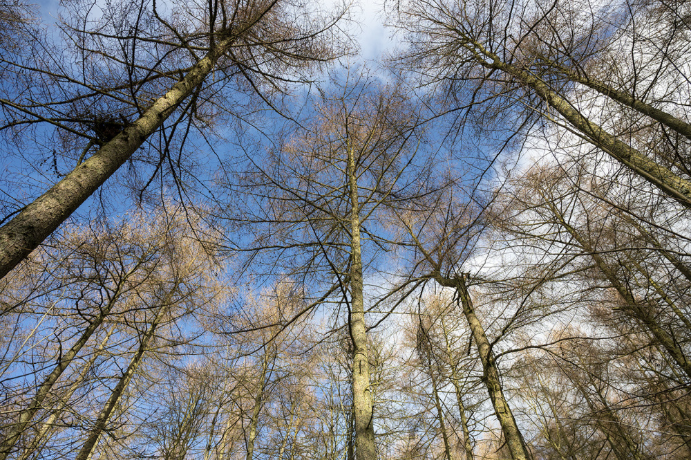 The woodland is mainly well spaced/well thinned Japanese larch, planted in 1958, which contrast with some wonderful mature beech trees believed to have been planted in the 1870s.