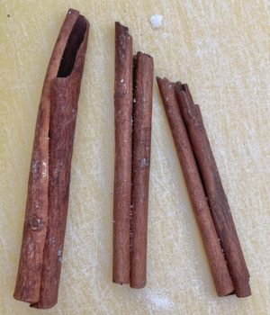 The trees are evergreen, with oval shaped leaves and a thick bark. When a tree is two years old, it is coppiced. That is, it is cut back to ground level so that in the following year a number of shoots are produced, which are allowed to grow on for future harvesting. When cut, the stems have the outer bark is scraped off so that the inner bark can be removed. It is this material that is rich in the spice. As it dries, it curls up into rolls or ‘quills’.
