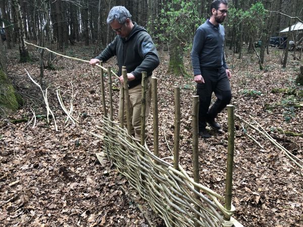 I live in a terraced house with a long garden (50m). My neighbours either side and I would like to learn how to erect hazel fencing in situ on our boundaries, and if anyone can offer a course on site, we would be very interested.