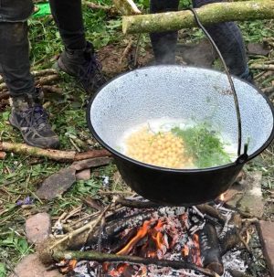 Between them, the group had quite a lot of knowledge of foraging and they found a patch of wild garlic which enabled them to flavour their rice rations. They identified green leaves to provide extra vitamins. Lady's smock has a peppery/mustardy flavour but after several meals of rice, it’s hard work to liven it up with anything.