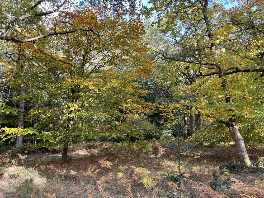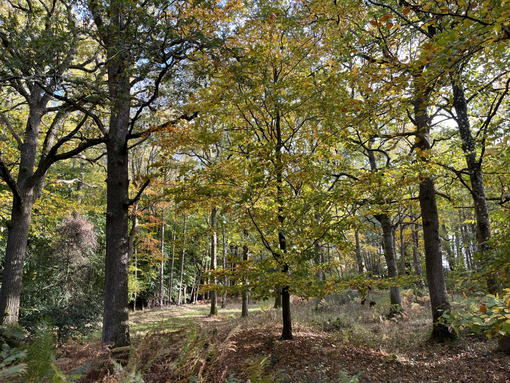 Even as the refulgent summer sun wanes, the striking colours of autumn illuminate the woodland vista. The palette of vivid summer greens drains from the leaves revealing a glittering sea of orange and gold. This annual display is particularly captivating at Boscage Wood due to the sheer variety of tree types found here. Cherry, beech, larch, oak and birch produce myriad shades and contrast with the coniferous cedar and pine that also make up this enchanting environment. The immersive effect is further enhanced by the rust coloured bracken as it retreats into the forest floor in the open clearings beneath stands of majestic oak. The wood takes its name from the word ‘boscage’ that describes this natural mix of trees and shrubs.
