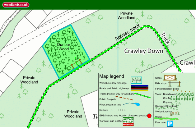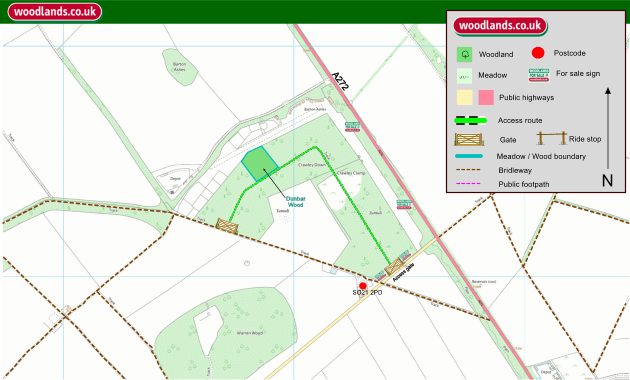 Dunbar Wood has much to offer the small woodland owner and there exists here the opportunity to further enhance an environment that boasts some impressive oak, beech and hawthorn, interspersed with stands of mature cedar conifer. This interesting mix has been well managed in the past, allowing for many fine specimens to reach maturity. The forest floor is a mixture of nature friendly thicket, where butterflies thrive in the sunny glades and elsewhere extensive areas of clear ground allow for unrestricted movement through the wood.