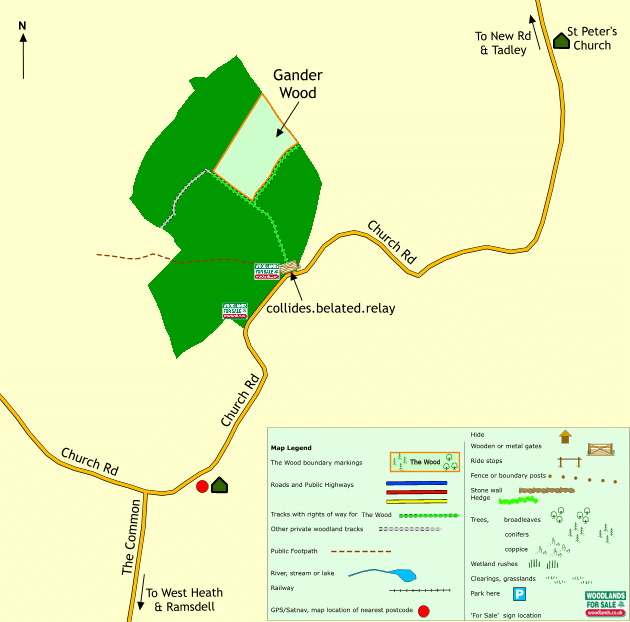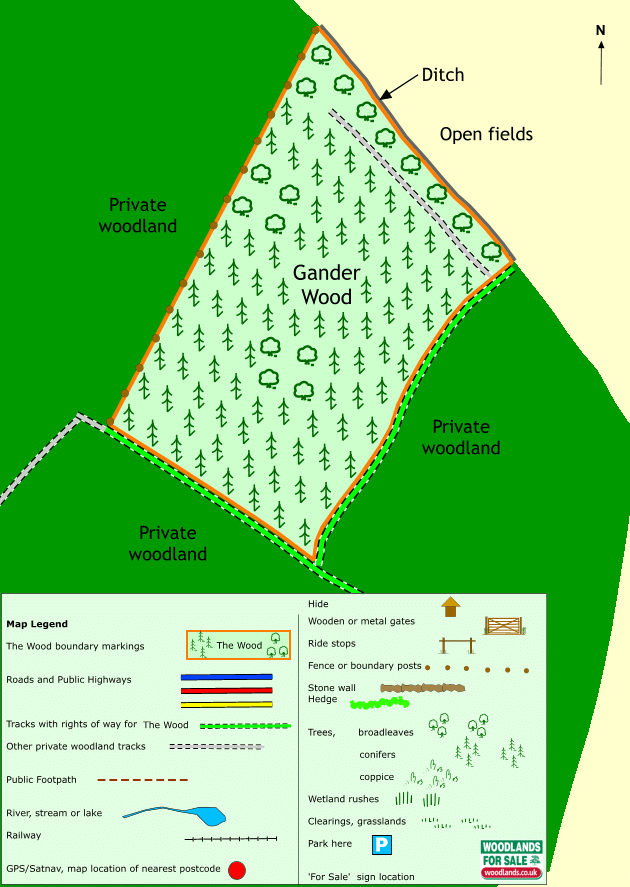 Good access tracks lead directly from the lane through surrounding woodland into Gander Wood. The new owner will have a key for the gate and so will have unrestricted vehicle access. There are no public footpaths into the wood, which is a peaceful, private space.