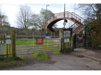 - Pass through the wooden pedestrian gate which leads to the station platform and turn sharp right.