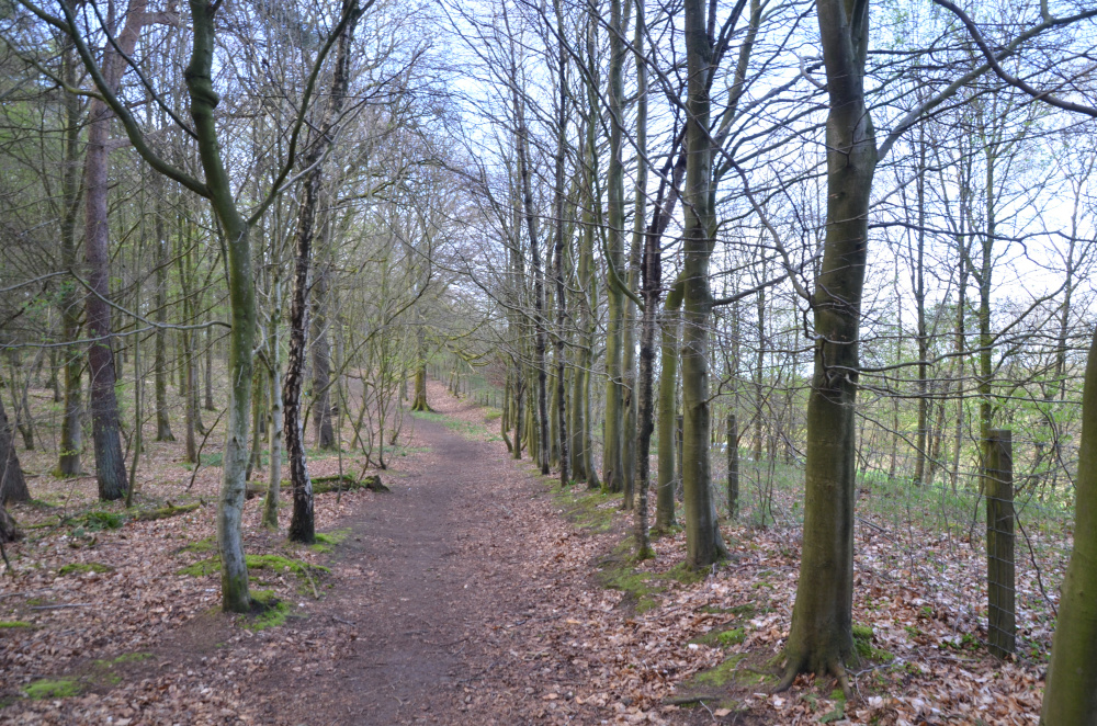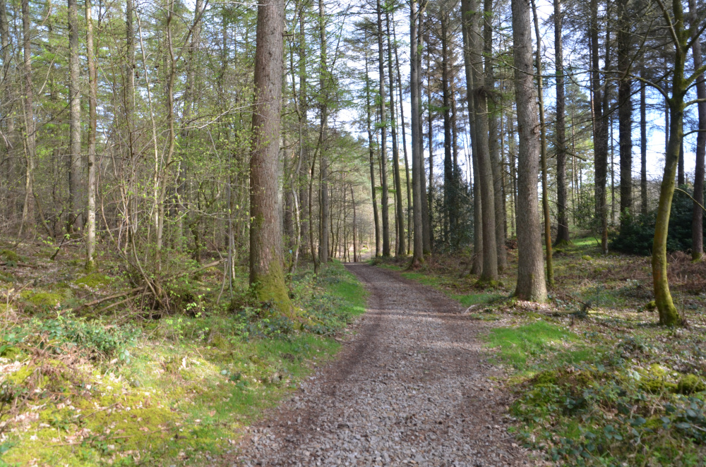 - Follow this track past an area of new planting on the right to the point where two paths cross.