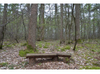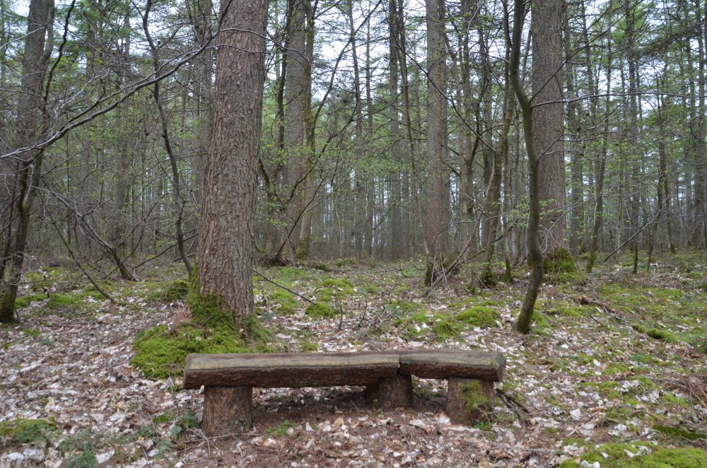 A woodland bench invites a chance to be still and watch the resident wildlife.