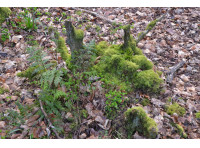 The canopy is light and open, allowing bramble, bluebell, foxglove and sorrel to proliferate. A variety of mosses and ferns give a pleasant verdant carpet throughout the seasons.