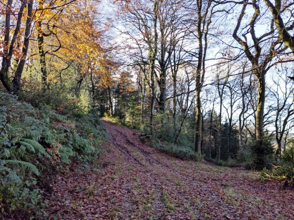 - Take the left hand fork and follow this track to the top of the hill where you will see a small 'woodland for sale' sign and a track on your left which heads back east to the entrance of Fiddlecott Wood.