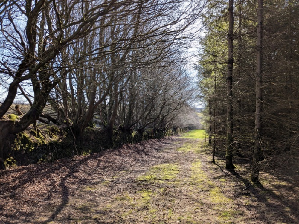 Predominantly a mix of planted sitka spruce & douglas fir trees planted around 25 years ago, these are now prime for a thinning. There is a current thinning license on the trees to open space for the other trees to grow in girth and add value for future crops for timber - locally produced timber is a very sustainable way of supplying local craftspeople with a resource to make products such as furniture or cladding for houses. This saves importing timber from further afield both within and beyond Europe.