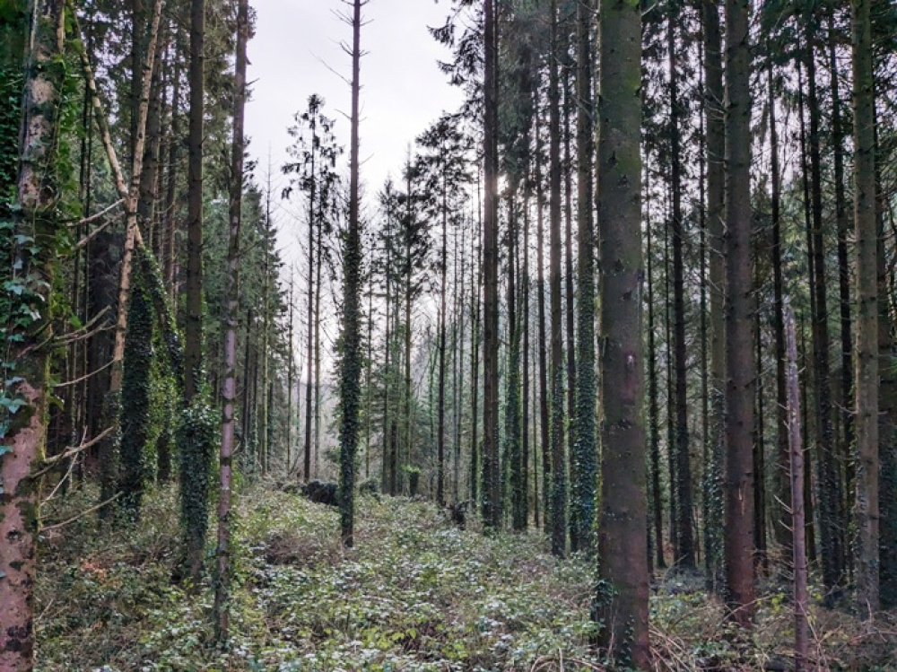 Within the upper, eastern part of the woodland is a mix of conifer trees including larch and Douglas fir. Some ash trees provide variety and a nice diversity of habitat.