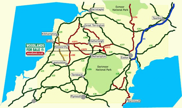 Stay on the A3124 for 3 miles, passing Cadditon Cross and looking out for Coulson Cross on your right where you will find the entrance gate to Oak Grove Wood opposite on the left hand side with a 'woodlands for sale' sign on the gate.