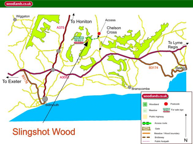 Slingshot Wood slopes down to the east to meet a track, which has excellent links to footpaths and bridleways leading to many local areas, including Sidmouth seafront.
