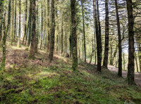- Continue to follow the main track and small ‘woodlands for sale’ signs over a couple of streams, up a short hill, and then left, continuing along the forestry track.