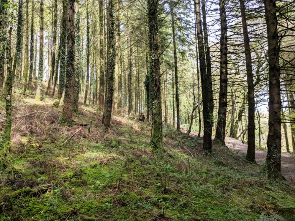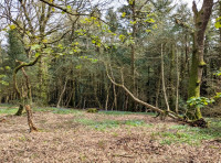 At the upper western reaches of the woodland are impressive, older ‘remnant’ broadleaved trees, such as sweet chestnut and oak, left over from when the woodland was first cleared—most likely to provide materials for the Second World War—and then replanted with conifer trees.