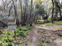 - You will reach a gate with a ‘woodlands for sale’ sign. Here you can park to the right of this gateway.