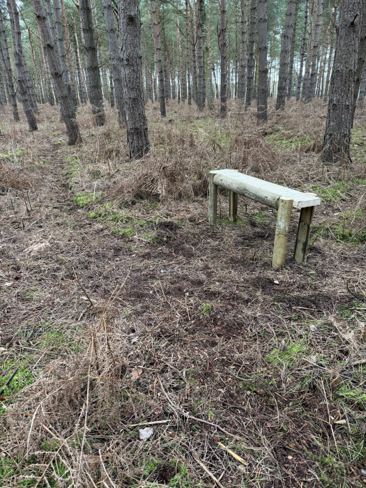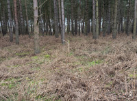 A level area of mature Scots pine with views over a private wild meadow. The trees are well spaced allowing easy access throughout the woodland. A bench can be found in a perfect place to observe deer and other wildlife.