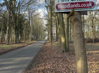 - You will come to a straight road with woods on both sides and a Woodlands.co.uk sign on the right.