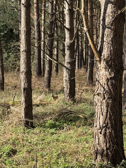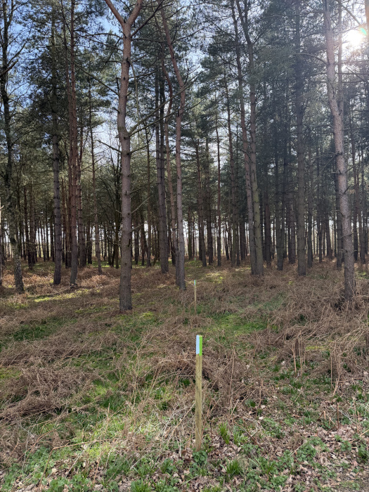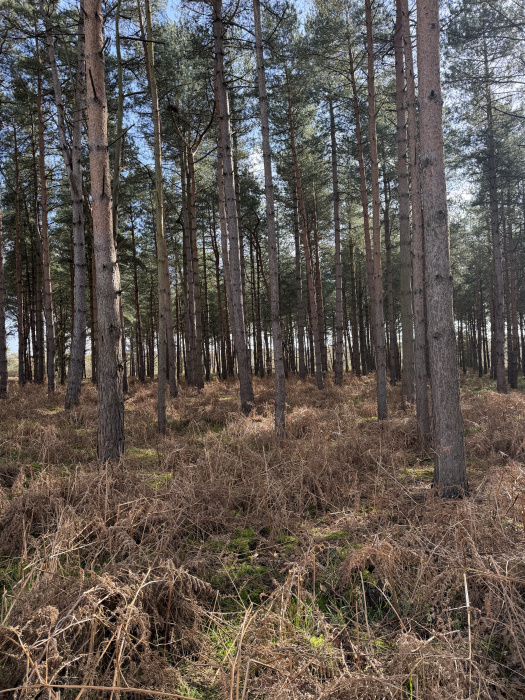 The woodland is predominantly stocked with mature Scots pine, creating a beautiful evergreen canopy and that wonderful woodland scent all year round. Interspersed among the pines are graceful silver birch, adding light, texture and seasonal colour — from fresh spring greens to golden autumn tones.