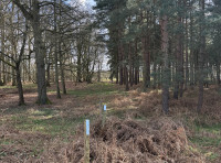 Little Ouse Wood boundaries are indicated with sky blue paint. The northern boundary is a stone track.