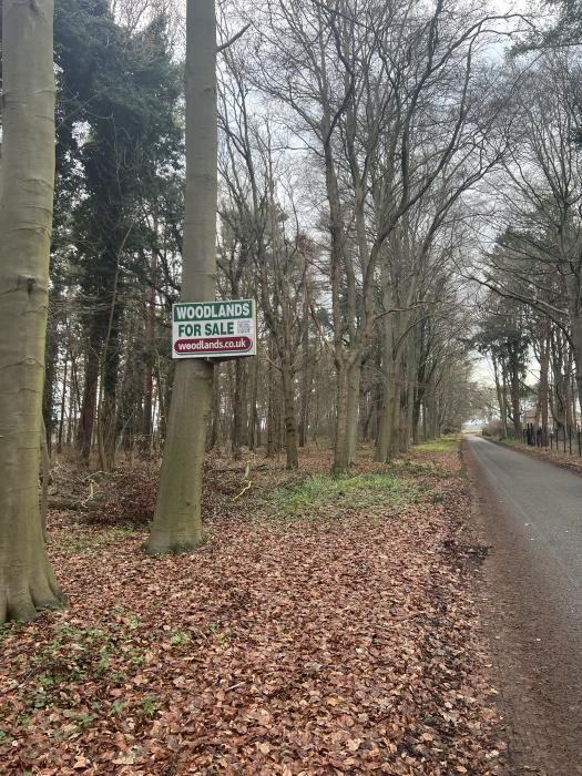 - You will come to a straight road with woods on both sides and a Woodlands.co.uk for sale sign on the right.