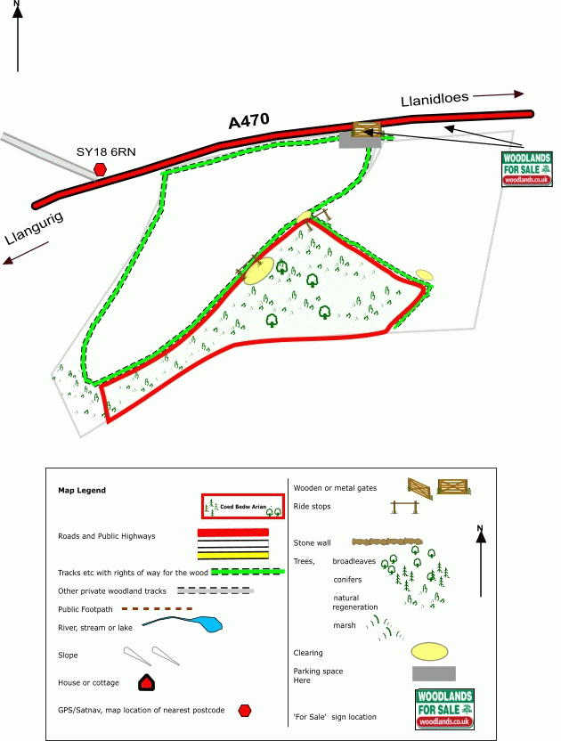 Follow directions to Newtown, Caersws and Llanidloes along the A470. Continuing south along the A470 from Llandiloes the Woodland is 4.1 miles on the left hand side along the road. There are visible ‘Woodlands.co.uk’ before the gate into the main woodland.