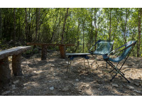 At the entrance to the woodland, a large clearing has been made and there is easily space for tents or woodland activities here. The wooden benches face outwards over the village of Llangurig.