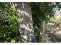 At the top of the stone steps, turn right up some earth steps to access the entrance to the wood.