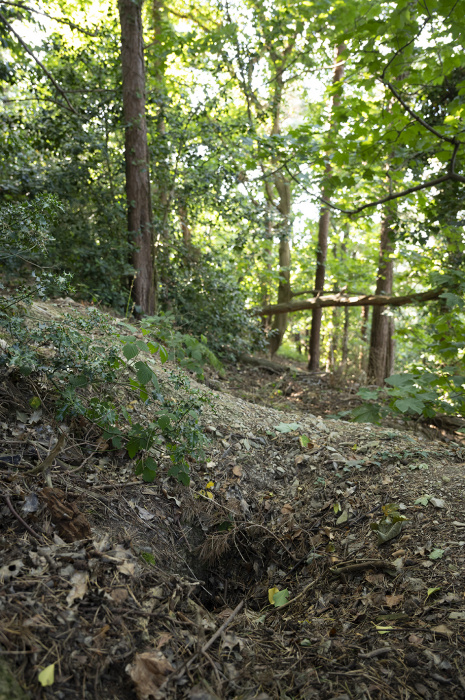 The established woodland is in itself a feature. Natural glades break up some dense areas of vegetation. Many badger runs offer ways through the denser woodland.