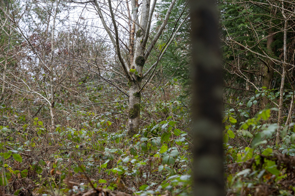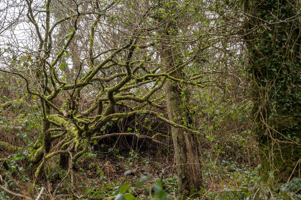 Here you'll find the larger areas of mature oaks, sycamore and alder, whilst lower down on the hillside you will find an explosion of birch, willow and more. The ground is a grow-bag for new saplings!