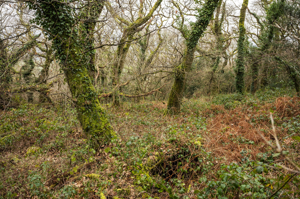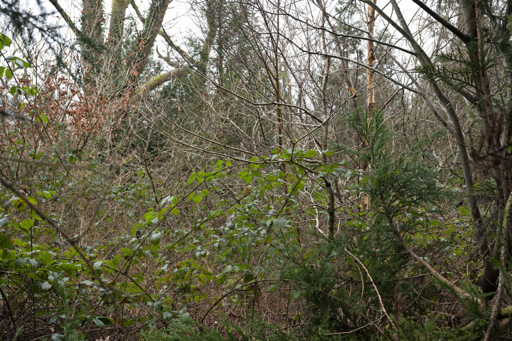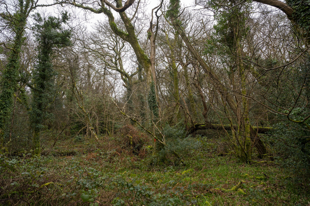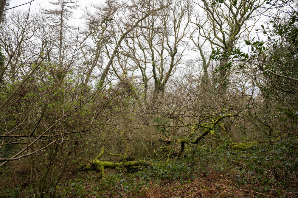 The upper part is accessed up through the dense growth. At the top of the woodland there are natural openings and spaces through which you can explore.