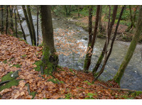 It is flat alongside the river and rises up to the south eastern boundary on the other side. The steeper parts are accessed via old extraction tracks.