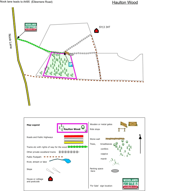 Haulton Wood is a flat well drained woodland full of wildlife, in a quiet location 15 minutes from Whitchurch. The woodland is in it's infancy and can be gently shaped to be whatever a new owner choses