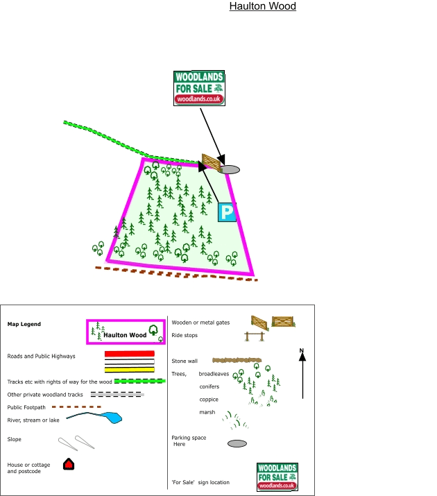 Haulton Wood has a hard standing area through a locked wooden gate, from the woodland can be entered.
