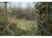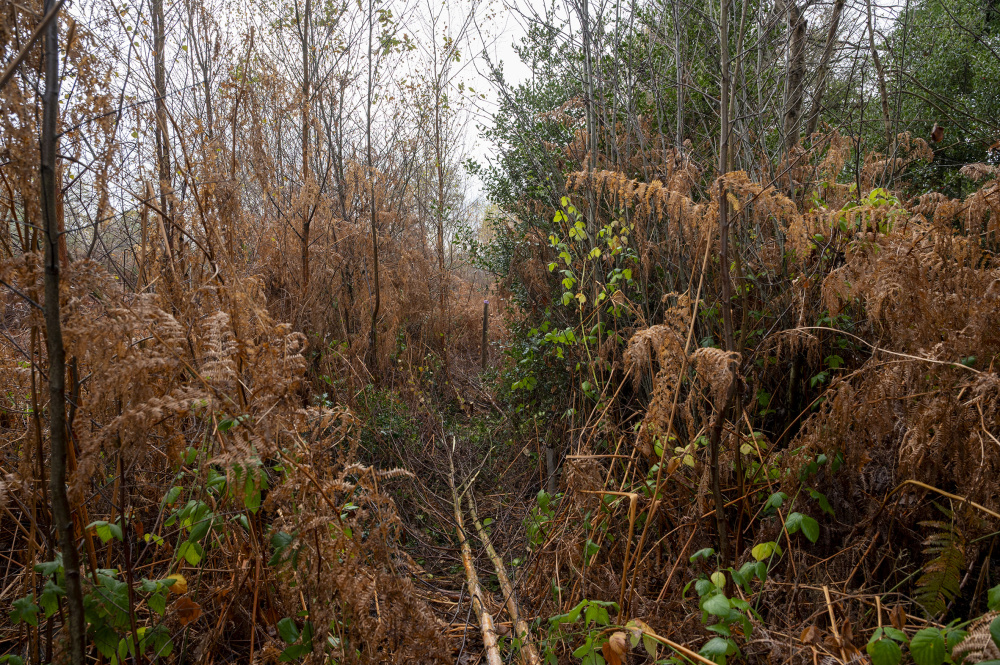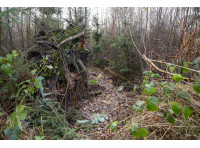 From the parking area, a cut pathway leads into the woodland, where a small clearing gives the idea of how the spacing in the woodland can be changed. It would be simple to create more paths enabling enjoyment and management of the woodland.