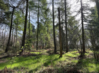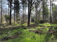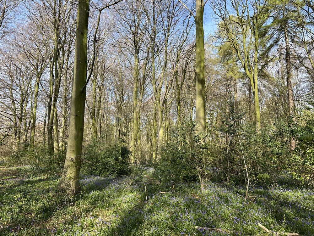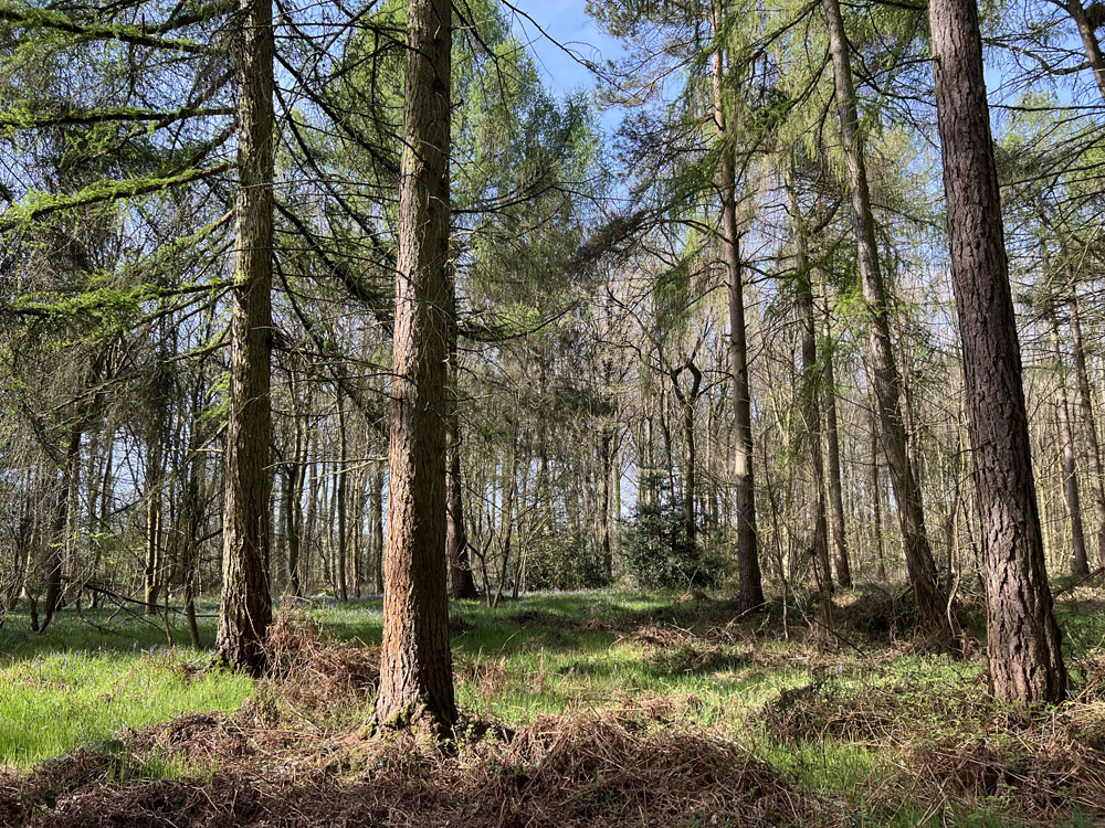 An attractive mixed woodland with well-spaced mixed conifers and mature beech with bluebells. Located at Bramham, between Wetherby, Leeds and Tadcaster.