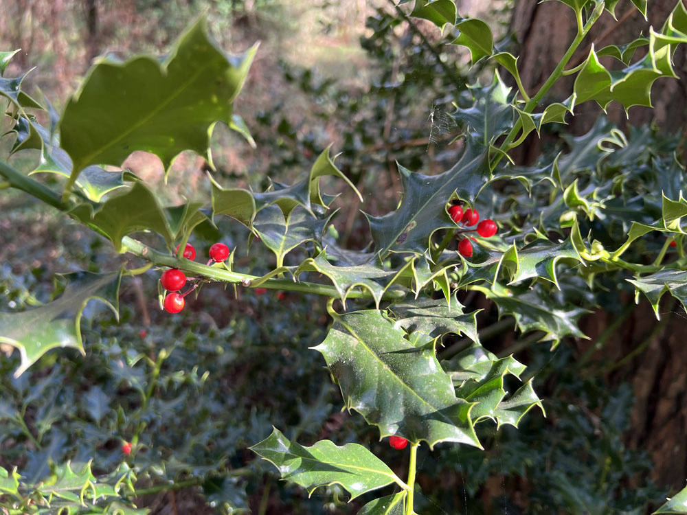 On arriving at the ride-stop entrance of Hermia Wood, set amid a larger forest near the village of Bramham, it is apparent that the wood has good maturity with lofty Scots pine and larch setting the scene upon entering. There are one or two spruce trees too and amongst the shrub layer, evergreen holly bushes afford privacy, along with many beech and sycamore seedling trees as well as fragrant honeysuckle. The wood has been managed in the past and the tall trees are well spaced, allowing the development of natural regeneration so a varied age structure is developing.