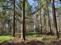 Mature beech, Scots pine, larch and spruce with oak, sycamore, rowan, ash, hawthorn and elder.