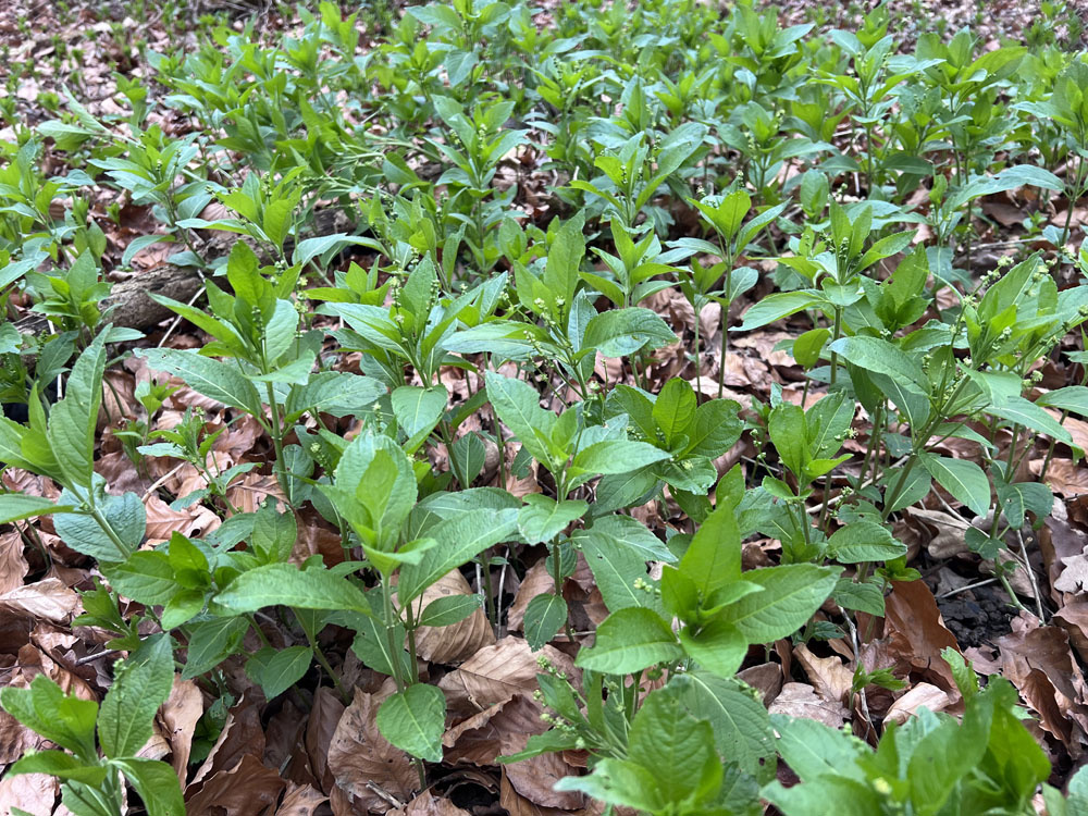 The ground is carpeted with bright green dog’s mercury and dotted with native ferns, primroses and viewers with a keen eye, might spot violets.