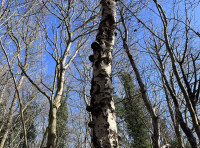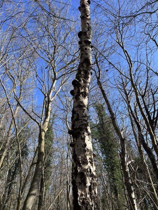 The tall trees are an attractive mixture of native broadleaves such as oak, beech, birch, sycamore, ash, and wych elm. A few of the older trees have ivy growing up them, providing evergreen cover for wildlife.