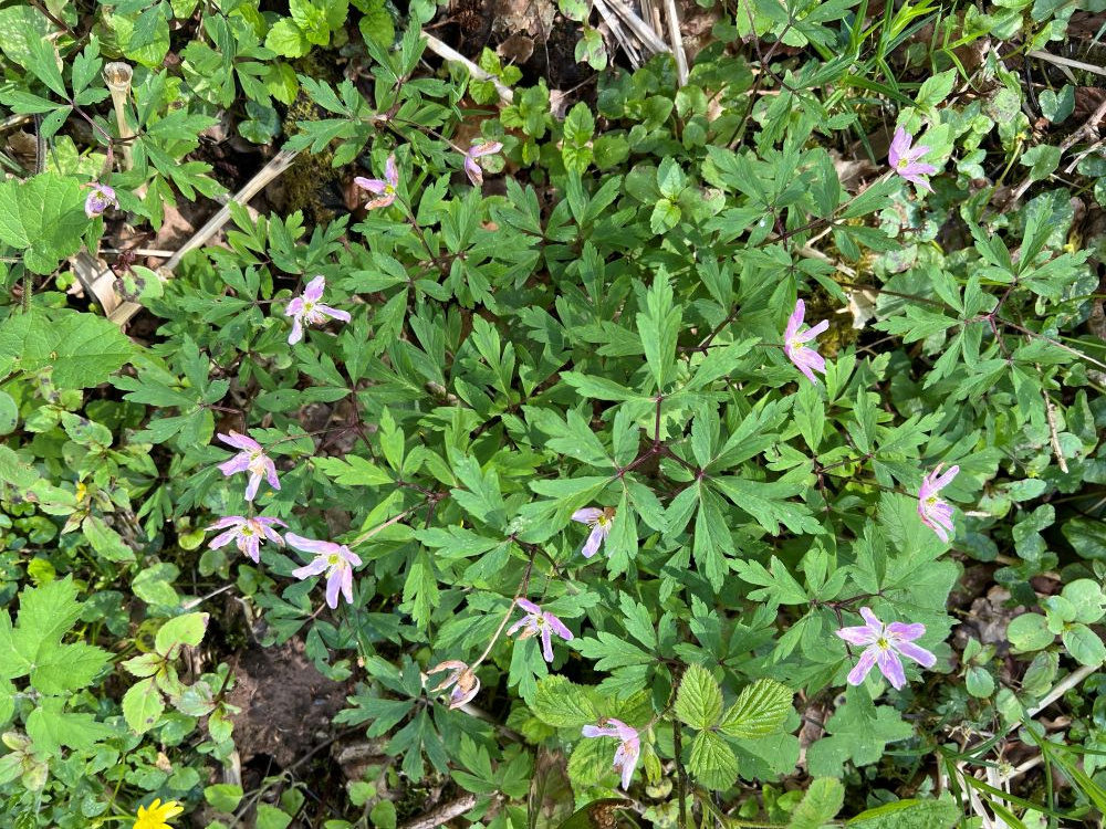 Many colourful woodland flowers can be found, including wood anemones and a scattering of bluebells. Other ground flora includes native ferns, patches of blackberry, holly bushes and woodland grasses.
