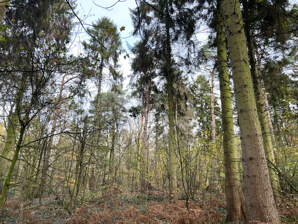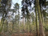 Mature beech, Scots pine and spruce with oak, sycamore, rowan, ash.