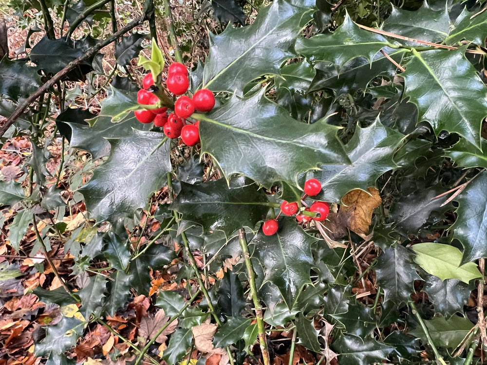As well as the beautiful bluebells that carpet the wood in Spring, there are patches of wild garlic, wild currant, native ferns, fragrant honeysuckle and stitchwort. Blackberry and bracken provide ground cover in the lighter areas.