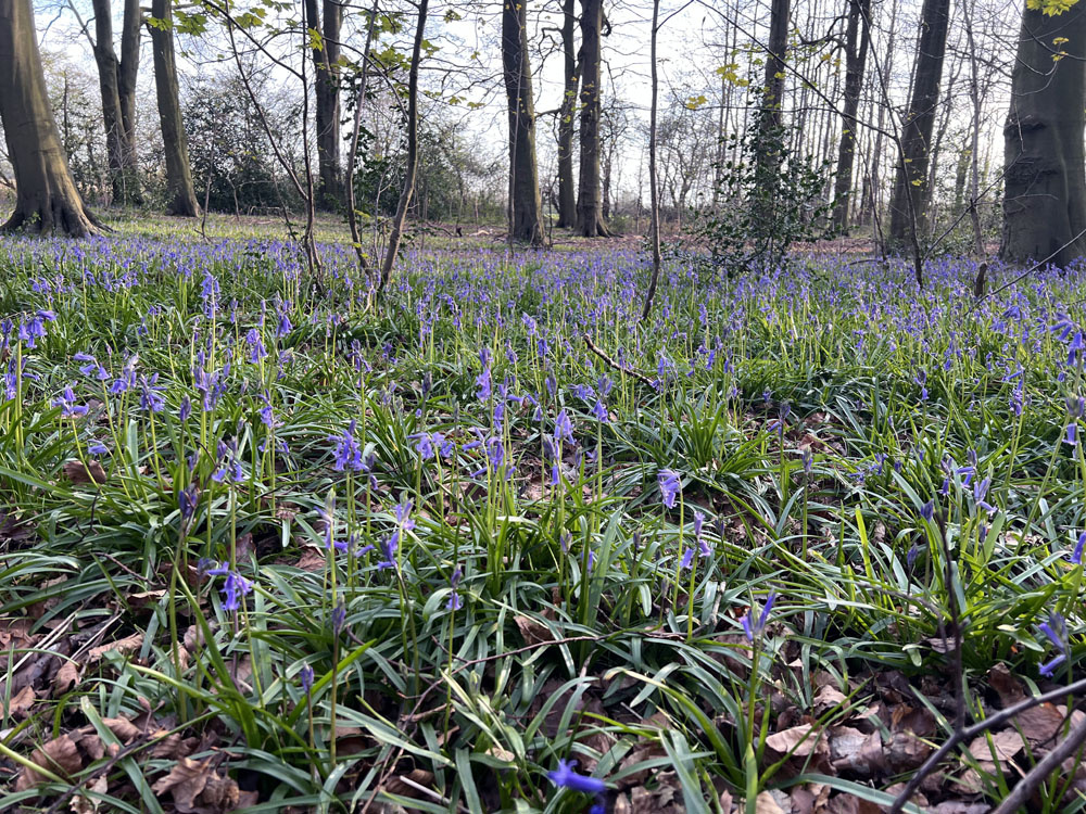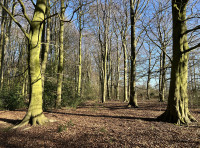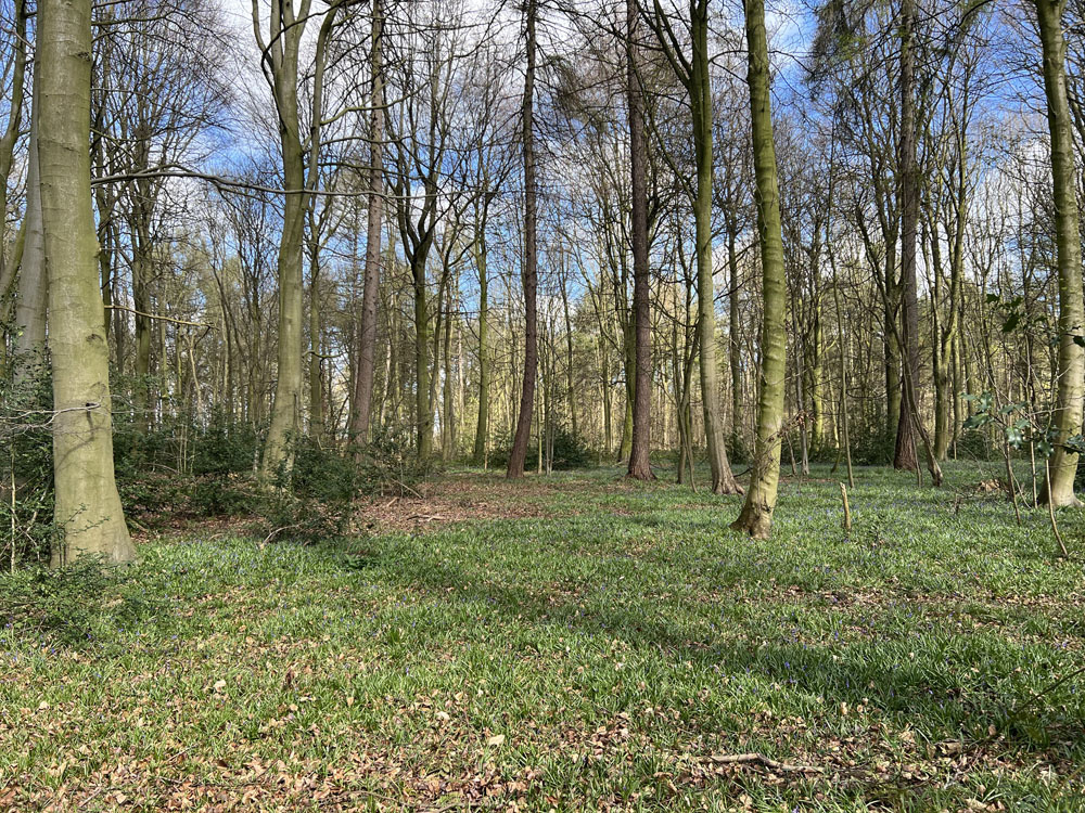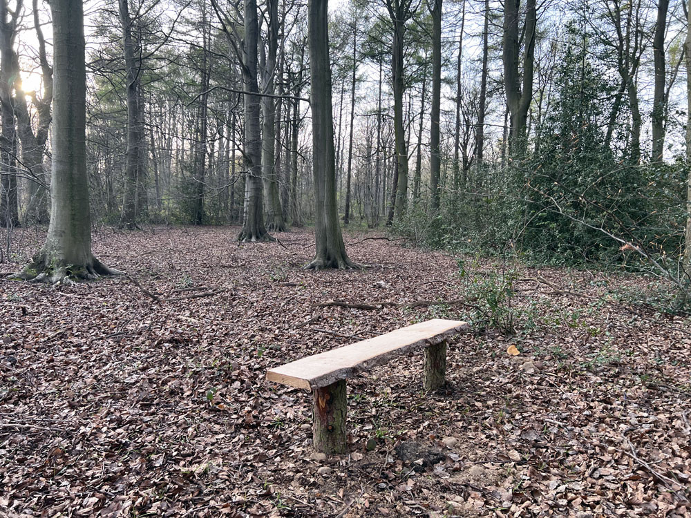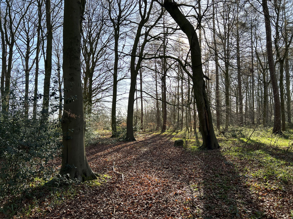Closest to the ride-stop, there is a mix of sycamore, larch and a few ash but these quickly give way to a large grove of lovely beeches, with holly bushes that give a great deal of privacy and create little enclosures. One such glade has a rustic bench situated to enjoy the surroundings.