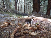 As befits a mountain woodland, there are a number of streams providing a good clean source of water that is essential for any prolonged periods of camping. The size of this woodland allows one to really feel a sense of wilderness, especially when wandering off the tracks. The wood is well stocked with timber providing a lifetime of firewood for family and friends: these woods are well worth a visit at any time of year.