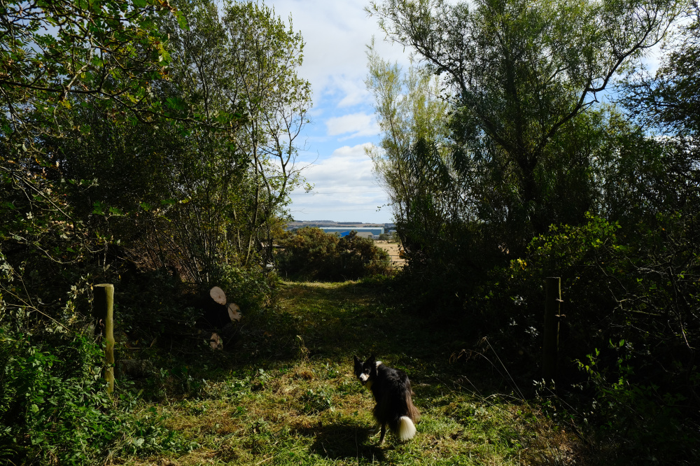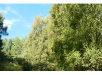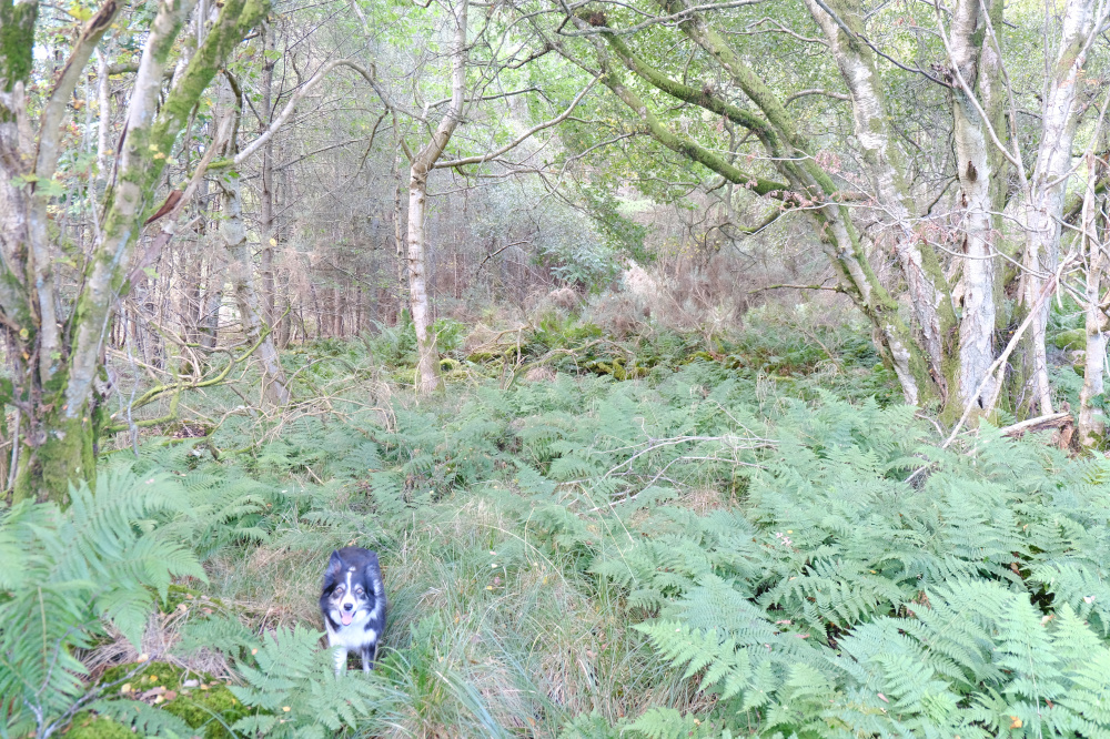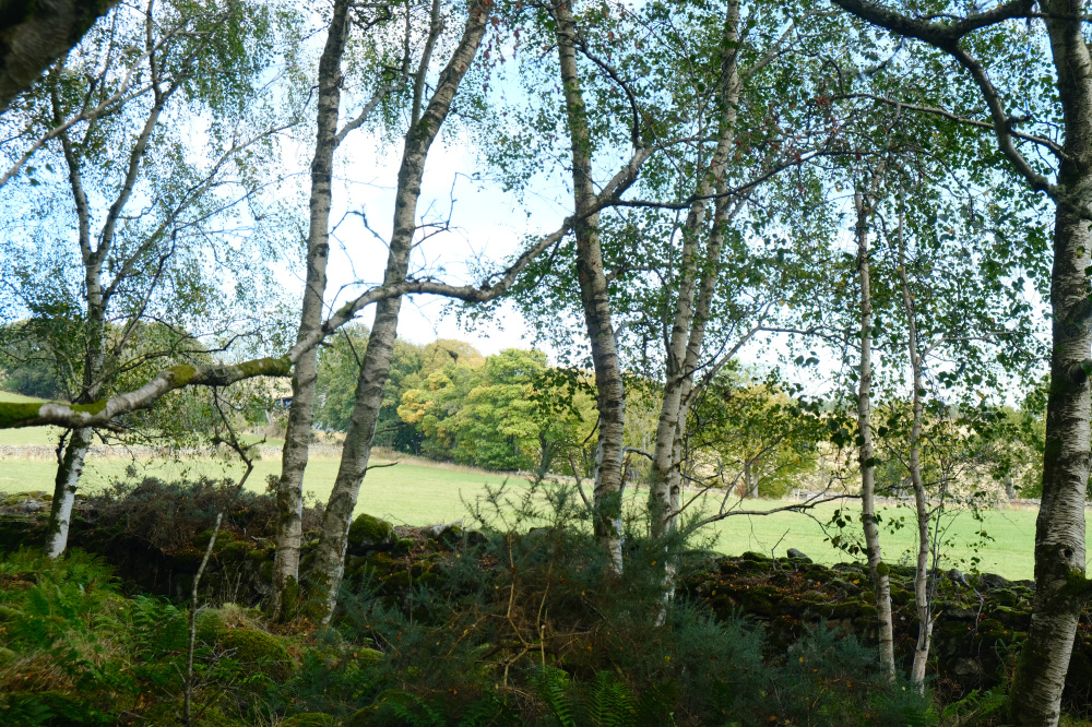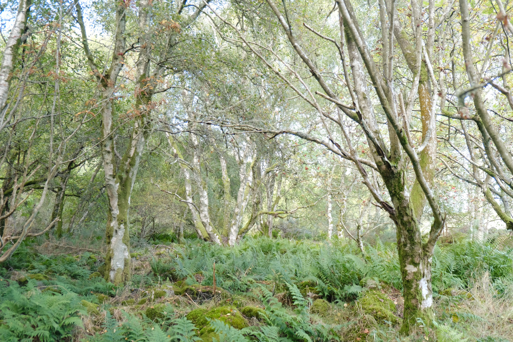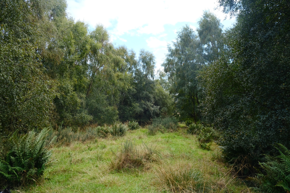 Possibly the prettiest part of the woodland, the eastern boundary has some rowan and birch, along with an open grassy area between it and the track.