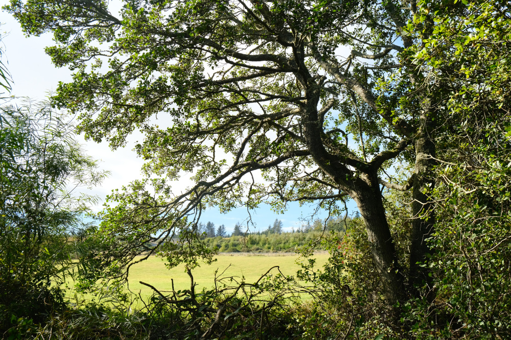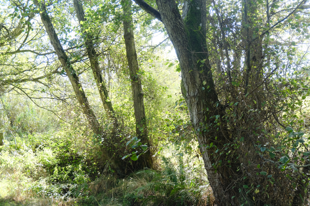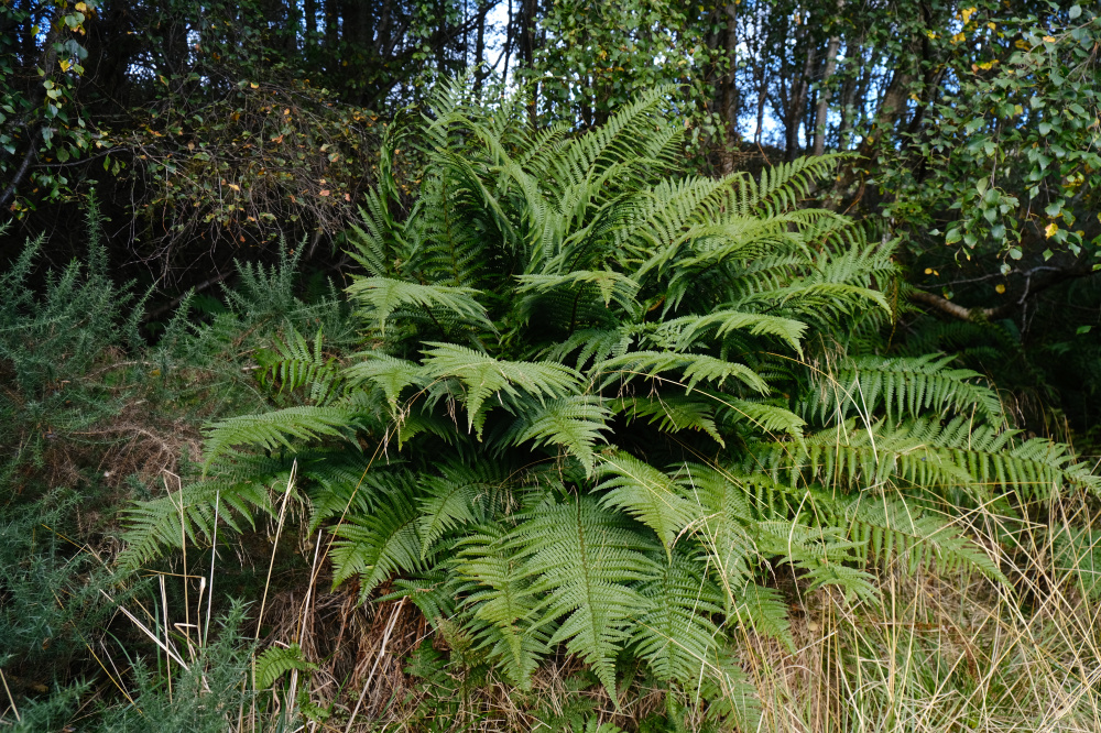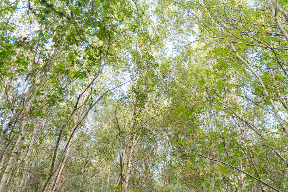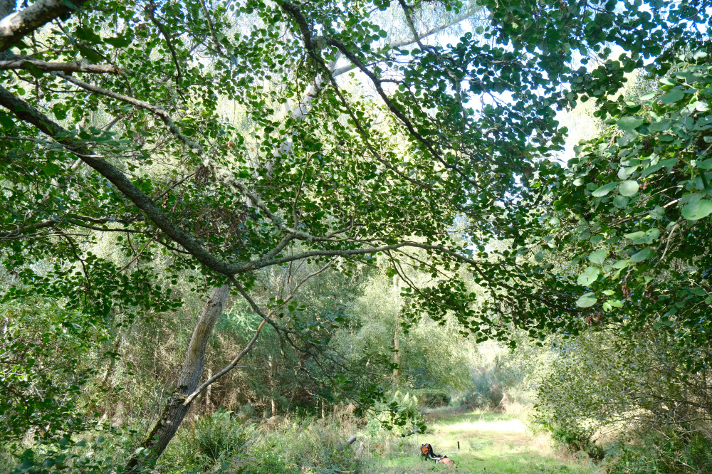 Possibly the prettiest part of the woodland, the eastern boundary has some rowan and birch, along with an open grassy area between it and the track.