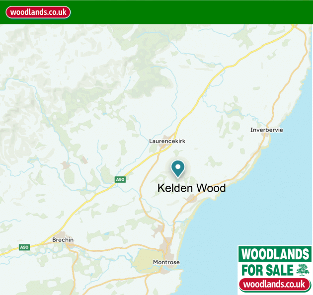 Kelden Wood is a mix of sitka spruce, mixed deciduous and open field in a wonderful and tranquil location close to the Aberdeenshire and Angus border. It is easily accessed off the A90, rising up to a plateau with panoramic views of the countryside and sea. This part of Scotland is seldom visited by tourists and is a mainly farming community with fertile valleys, close to the coast and within an hours drive from the centre of the Cairngorms.