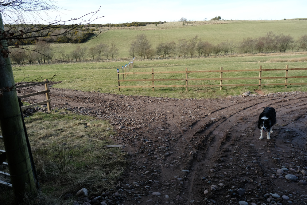 - Straight over the A937 and carry on turning left when you get to Muirhead Cottage. Park here allowing room for cars to pass. Please do not block the gate.
