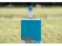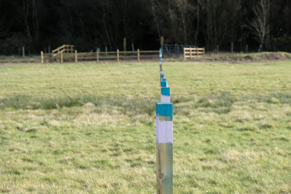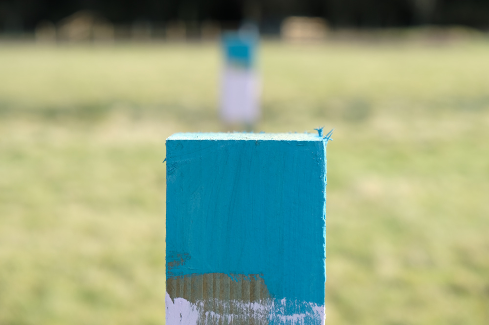 Boundaries are marked by purple painted post tops